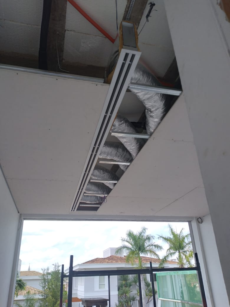O projeto incluiu a aplicação de grelhas lineares, garantindo estética refinada, distribuição uniforme de ar e acabamento compatível com o nível do empreendimento.